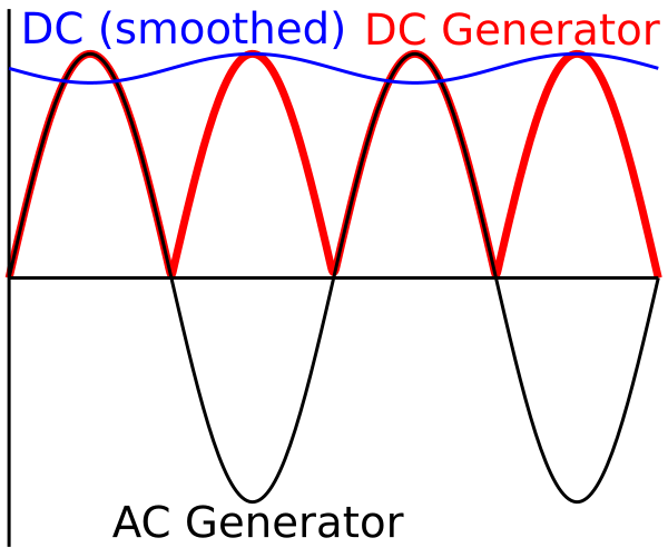 Постоянный ток может быть преобразован в переменный с помощью инвертора.