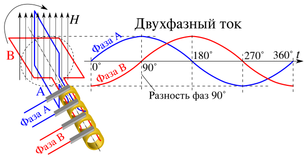См. также двухфазная электрическая сеть, двухфазный двигатель.