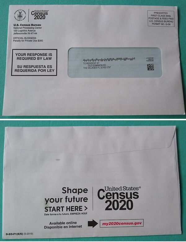 - Август 2019 года: Бюро переписи населения проводит оперативную агитацию по адресам на местах. Переписчики посещают районы, в которых в последние годы было добавлено или утрачено жильё, чтобы убедиться в актуальности адресного списка Бюро переписи. Перепись 2020 года станет первой современной переписью, которая не проверяет каждый адрес лично, на местах. Вместо этого спутниковые снимки, данные почтовой службы США и другие текущие записи будут подтверждать большинство адресов и выделять области, где требуется личная проверка.