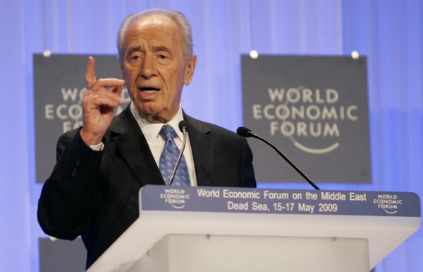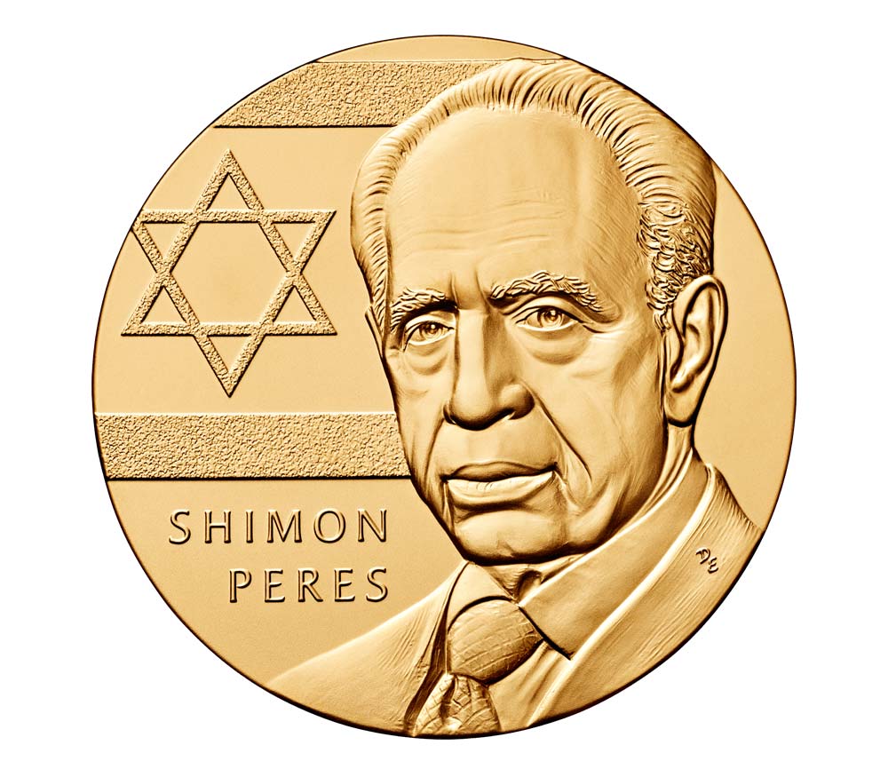 Девятый президент Государства Израиль с июля 2007 года по июль 2014 года. Многолетний депутат кнессета, избиравшийся непрерывно с 1959 года по 2007 год (начиная с 4-го созыва и до 17-го созыва кнессета) от партий Мапай, РАФИ, Авода и Кадима[3][4]. Восьмой премьер-министр Израиля (занимал должность дважды, 1984—86 и 1995—96), хотя партия под его руководством ни разу не побеждала на выборах[4]. Один из создателей партии Авода и её многолетний лидер (1977—1992, 1995—1997, 2001, 2003—2005).