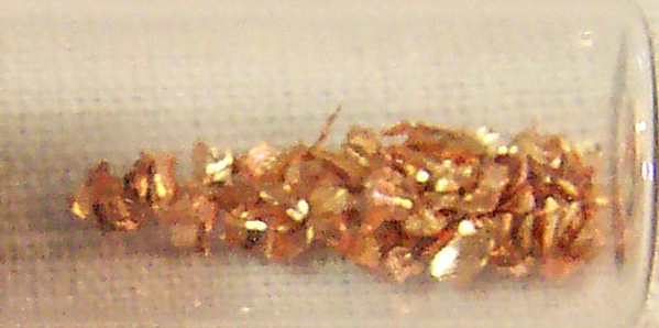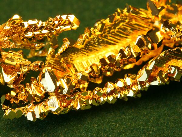Золото представляет собой металл, сочетающий высокую химическую инертность и красивый внешний вид, что делает его незаменимым в производстве ювелирных украшений[15]. В отличие от меди и серебра, золото крайне инертно по отношению к кислороду и сере, но реагирует с галогенами при нагревании: