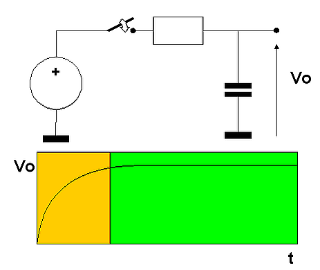 Например, при подключении разряженного конденсатора к источнику напряжения через резистор , напряжение на конденсаторе меняется от 0 до по закону: