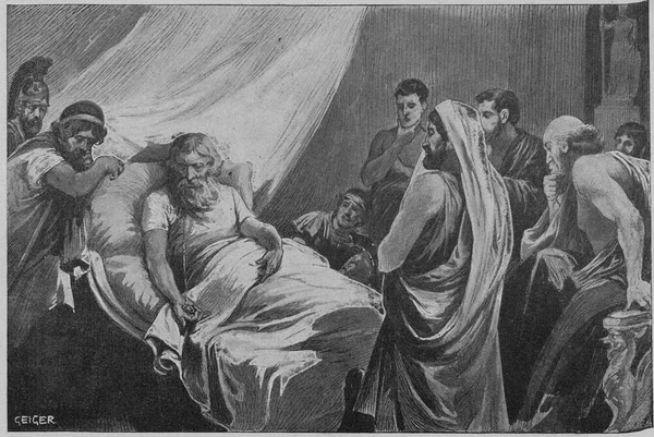 Под удар попал и знаменитый скульптор Фидий, причём выдвинутые в его адрес обвинения оказались наиболее опасными для Перикла[255]. Помощник Фидия Менон заявил, что тот украл часть золота, выделенного на статую Афины Девы в Парфеноне; Перикл как главный распорядитель строительства на акрополе тоже должен был нести за это ответственность. Обвинение Менона осталось недоказанным, но к нему добавилось ещё одно — в том, что на щите статуи богини, стоявшей в наиболее священном месте города, Фидий изобразил себя и Перикла. Скульптора посадили в тюрьму, где он и умер при невыясненных обстоятельствах — либо от болезни, либо от яда[265][266][255][249][267].