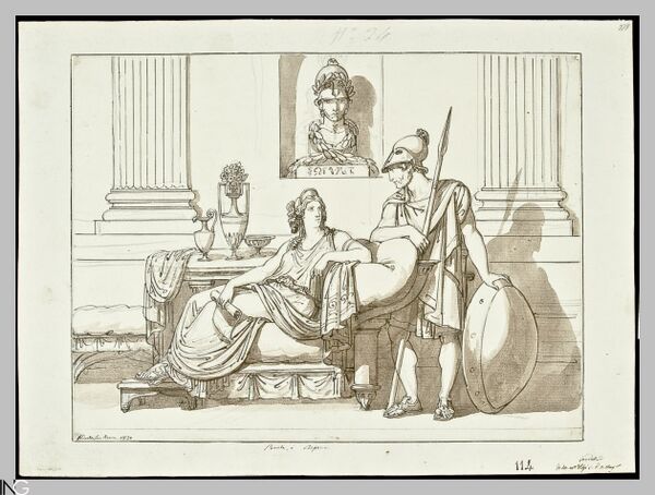 Враги Перикла привлекли к суду и его возлюбленную Аспасию, которой инкриминировали «нечестие» и содержание притона[255]. В роли обвинителя выступил комедиограф Гермипп, а защитником-простатом стал сам Перикл (женщина, ещё и не обладавшая гражданскими правами, не могла выступать в афинском суде). По свидетельству Плутарха, который ссылается на Эсхина из Сфетта, Перикл «вымолил ей [Аспасии] пощаду, очень много слёз пролив за неё во время разбирательства дела»[250]. Афиней со ссылкой на Антисфена пишет, что, защищая свою возлюбленную, Перикл «пролил больше слёз, чем тогда, когда опасность угрожала его собственной жизни и имуществу»[260][261][262]. Впрочем, историки не исключают, что вся эта история — позднеантичная выдумка[263]. Согласно ещё одной гипотезе, данные о реальном процессе могли смешаться с обвинениями в адрес Аспасии, высказанными в комедиях (в частности, в пьесах Гермиппа)[264].