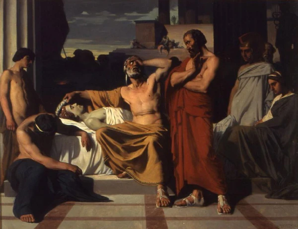 Согласно Плутарху, декрет Диопифа был направлен непосредственно против Анаксагора, и Перикл, боясь за философа, убедил его ещё до суда уехать из Афин[250]. Сатир Перипатетик добавляет, что подсудимый был заочно приговорён к смерти; в этой версии обвинителем был Фукидид, и Анаксагору инкриминировали, наряду с нечестием, «персидскую измену»[252]. По версии Сотиона, философ всё-таки явился в суд, и защищал его сам Перикл. Обвинителем же был Клеон, начинавший тогда карьеру демократ радикального толка (возможно, он действительно заключил тогда временный союз с олигархами[253][254]). Анаксагор за «нечестие», проявившееся в характеристике солнца как «огненной глыбы», был приговорён к изгнанию и штрафу в пять талантов[255]. Наконец, Гермипп утверждает, что философа приговорили к смерти и бросили в тюрьму, но Перикл спас его, обратившись к народу. Стратег спросил, «даёт ли его, Перикла, жизнь какой-нибудь повод к нареканиям?» Получив отрицательный ответ, он сказал: «А между тем я ученик этого человека. Так не поддавайтесь клевете и не казните его, а послушайтесь меня и отпустите». После этого Анаксагор получил свободу[256][257][258][259].
