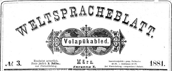 Первая газета на искусственном языке была выпущена на волапюке в 1881 году. С этого времени начинает регулярно выходить двуязычная газета «Weltspracheblatt — Volapükabled» (Волапюкский листок) — центральный орган волапюкского движения. С 1889 года газета выходит только на одном языке — волапюке (просуществовала до 1908 года). Надо заметить, к 1889 году издавалось 26 журналов на этом конланге (выходило более 30 периодических изданий). В это время существовало более 30 периодических изданий обществ волапюка. Например, известны Volapükabled talik (Итальянский листок волапюк) и Volapükabled Zenodik.