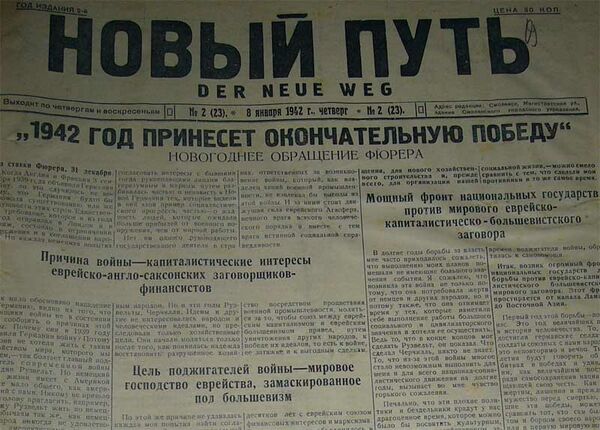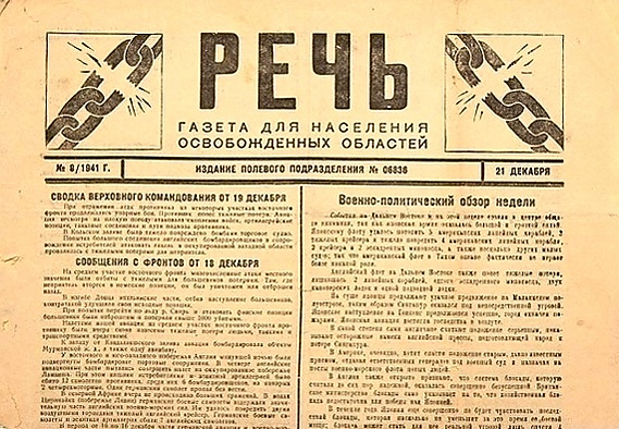 Немецкие издания на территории России в годы Великой Отечественной войны были представлены, в основном, русскоязычными газетами и журналами, разовые тиражи которых доходили до 100 тыс. экземпляров. Известными оккупационными многотиражками были псковская газета «За родину»[11], орловская «Речь» и смоленская «Новый путь»[12].
