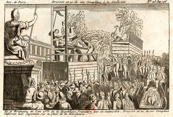 Террор представлял собой период насилия в ходе конфликта между соперничающими политическими группировками (жирондисты и якобинцы), в течение которого якобинцы провели массовые казни «врагов революции». Под лезвием гильотины (ставшей символической «бритвой нации») закончили свои жизни Людовик XVI (казнённый ещё в январе 1793 года), Мария Антуанетта, герцог Орлеанский (гражданин Филипп Эгалите), лидеры жирондистов (Жак-Пьер Бриссо, Пьер Верньо, мадам Ролан), дантонистов (Жорж Жак Дантон), эбертистов (Жак-Рене Эбер, Пьер Гаспар Шометт) и фельянов (Антуан Барнав, Жан Сильвен Байи), химик Антуан Лавуазье, поэт Андре Шенье и многие другие.