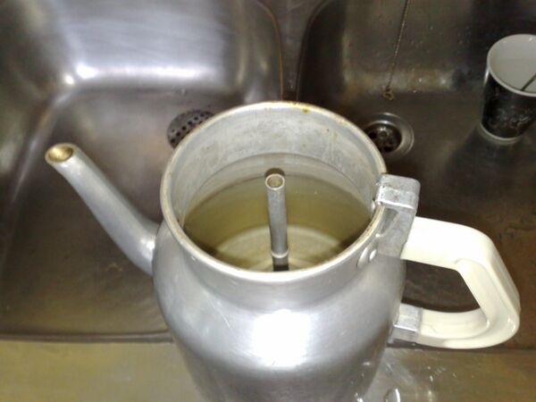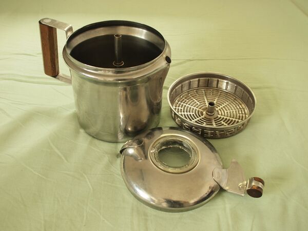 Перколятор представляет собой стальной чайник, в нижней части которого находится камера, близкая к источнику тепла. Данная камера при помощи трубки соединена с отдельной перфорированной ёмкостью для молотого кофе, расположенной в верхней части кофеварки.