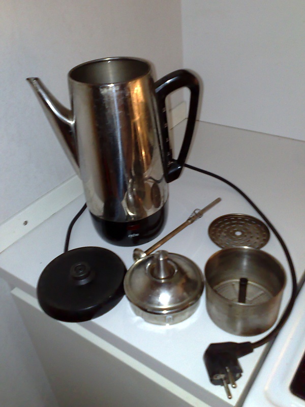 Некоторые модели перколяторов снабжены электрическим нагревательным элементом, который также сохраняет готовый кофе от повторного закипания.