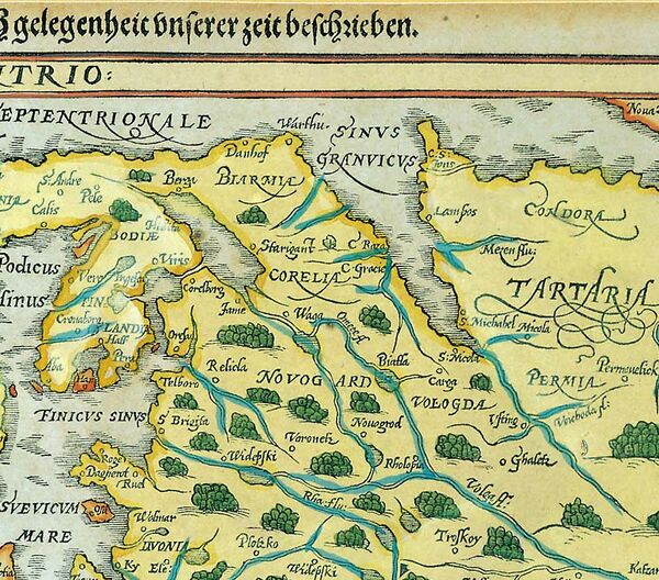 «Провинция Пермия (Permia) граничит с Зырянами (Syrianes) на севере, и с Вологдой на юге; восточная граница, кажется, река Иртыш (Irtis), которая впадает в Обь (Oby); главный город Пермь Великая (Permia Weliki). Эта страна населена не намного лучше, чем в прошлом, и люди, как говорят, заняты, главным образом, охотой»[7].