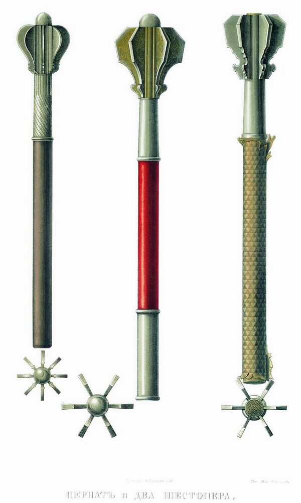 Представляет собой разновидность булавы, меньших размеров[3], к головке которой прилито несколько (до двух десятков) металлических пластин (перьев). Большое распространение получила разновидность одноручного пернача с шестью перьями, называемая шестопёром — полковничья булава (тоже жезл полковничий) с шаром, разрезанным на шесть вертикальных лопастей[4].