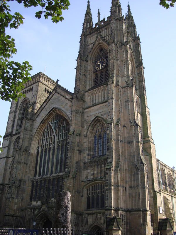 - Башни весьма высокие, часто с крепостными зубцами, шпилями увенчиваются реже, чем ранее. Контрфорсы башен помещаются по диагонали угла, а не в продолжении стен, что наиболее оправдано с конструктивной точки зрения. Среди башен в Перпендикулярном стиле следует отметить башни Йоркского и Глостерского соборов, церкви в Бостоне (Уорвикшир) и Тонтоне. [16]