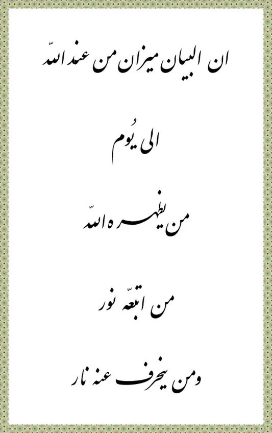- напоминает о «Том Кого Бог явит» (о возврате Мессии) после завершения развития цикла Байаник.
