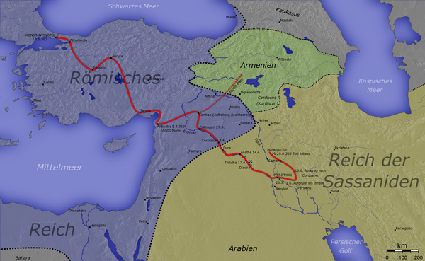 Вторжение римских войск под командованием императора Юлиана Отступника на территорию Персии являлось одним из звеньев в цепи римско-персидских войн, начавшихся в первой пол. III в. н. э. (после прихода к власти в Иране династии Сасанидов) и стало завершающим этапом крупного вооруженного конфликта — Римско-Иранской войны 338—363 гг.[1]
