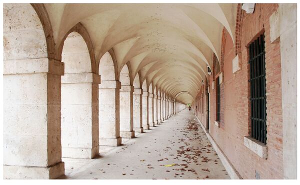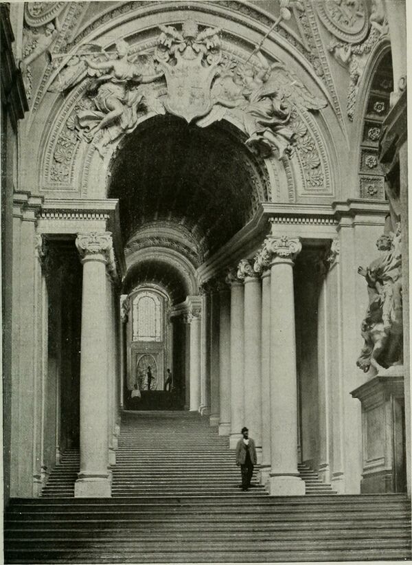 Выдающимся архитектурным произведением, построенным по принципу усиленно сходящейся перспективы является «Царская лестница» Ватикана, или Скала Реджа (итал. Scala Regia), созданная в 1663—1666 годах по заказу папы Александра VII по проекту выдающегося архитектора римского барокко Джованни Лоренцо Бернини. Она ведёт в парадный Царский зал (Sala Regia) и Капеллу Паолина, соединяя вход с площади Святого Петра с Ватиканским дворцом, и имеет важное церемониальное значение. Однако из-за недостатка места архитектору пришлось прибегнуть к хитрости дабы придать короткой и узкой лестнице величественный образ. Нижние марши по мере восхождения сужаются, при этом высота лестничного пространства постепенно становится ниже. Благодаря оптическому обману и скрытым источникам освещения, при взгляде с нижнего лестничного пролёта вверх, туда, где появляется папа, возникает ощущение видения властителя спускающегося с неба на грешную землю[16].