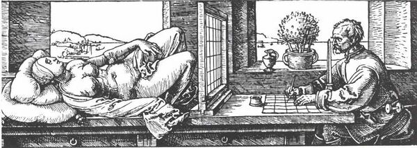 Похожий способ описывает выдающийся художник Северного Возрождения Альбрехт Дюрер в четвёртой книге трактата «Руководство к измерению циркулем и линейкой, в плоскостях и целых телах, составленное Альбрехтом Дюрером и напечатанное с чертежами в 1525 году на пользу всем любящим искусство» (Underweysung der messung mit dem zirckel und richtscheyt in Linien ebnen vnnd gantzen corporen durch Albrecht Dürer zusamen getzogen und zu nutz allen kunstlieb habenden mit zugehörigen figuren in truck gebracht im jar. MDXXV)[9]. В «Книге о живописи» Дюрер писал: