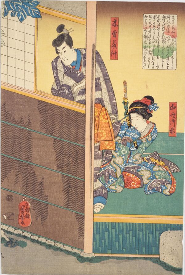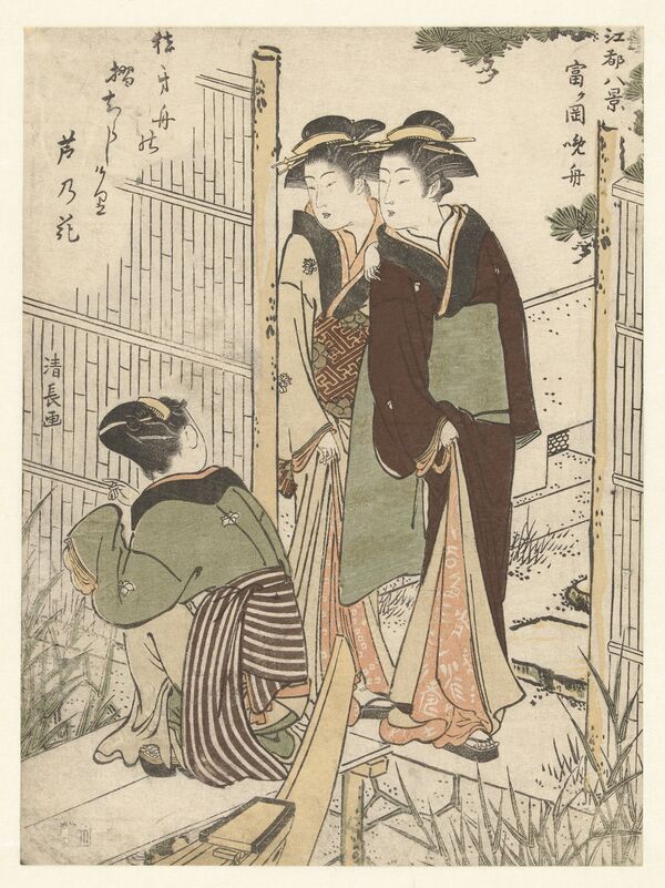 В вертикальных форматах, особенно свойственных восточному искусству, явственно проступает последовательное уменьшение изображённых предметов к переднему плану и к краям изображения. В нижней части таких изображений мы замечаем обратную перспективу с высоким горизонтом, в средней — параллельную с некоторым увеличением масштаба, из-за чего изображённые в этой части фигуры людей получаются большеголовыми, видимыми как бы сверху вниз, и коротконогими. Верхняя часть композиции строится в системе усиленно-сходящейся перспективы. В целом сочетание различных приемов создает ощущение пространства наполненного, насыщенного движением, с мощным развёртыванием содержания снизу вверх и от середины к краям