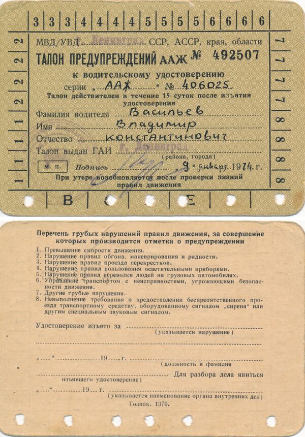 - для нанесения отметки о совершении грубого нарушения правил дорожного движения в соответствующем секторе талона предупреждений к водительскому удостоверению.