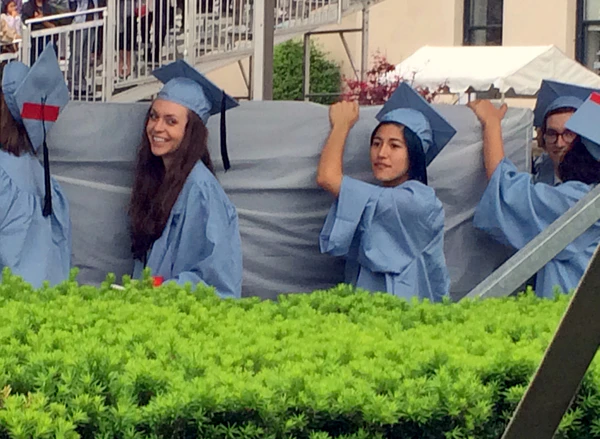 Сулкович сказала, что работа завершится, когда Нунгессера исключат из Колумбийского университета или после того, как он сам отчислится. Она добавила, что возьмёт матрас на выпускную церемонию, если потребуется[16]. В итоге 19 мая 2015 года Сулкович принесла его на выпускную церемонию, несмотря на просьбу учреждения не брать с собой «крупные предметы, которые могут помешать проведению мероприятия»[3]. Несколько женщин помогли ей поднять матрас на сцену. Когда Сулкович подошла к ректору университета Ли Боллинджеру, который пожимал руки выпускникам, тот отвернулся. Он сделал вид, будто хотел что-то взять, и не стал пожимать руку студентке. Администрация университета заявила, что это произошло из-за того, что ректору мешал матрас[6]. На следующий день в Морнингсайд-Хайтс (рядом с университетом) появились плакаты, в которых Сулкович назвали «маленькой симпатичной лгуньей»[20].