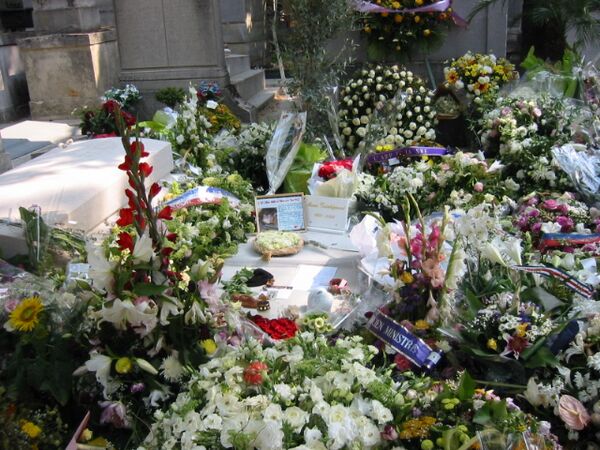 - На могиле Джима Моррисона поначалу стоял небольшой мраморный бюст, который куда-то подевался. Его могила самая посещаемая на кладбище и она же самая «шумная». Возле неё постоянно толкутся толпы людей, которые громко разговаривают, поют песни The Doors, мусорят, оставляют тысячи записок, разбрасывают окурки и курят марихуану. В 2001 году руководство кладбища предлагало перенести останки Моррисона в другое место, потому что срок контракта на пребывание останков музыканта на Пер-Лашез истекал. Однако под давлением общественности контракт был продлён[8]