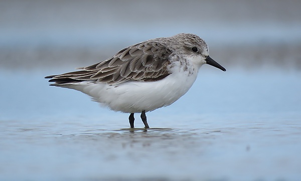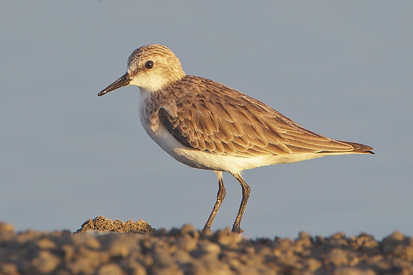 Эти птицы относятся к самым мелким куликам, очень похожи на песочника-крошку, с которым ранее считались одним видом. Малые размеры, тонкий тёмный клюв, тёмные ноги и более быстрые движения отличают этот вид от всех других куликов, кроме других тёмноногих песочников. Длина тела составляет 13–17 см, размах крыльев — 28–37 см, масса — 21–51 г[7]. Отличается от западного песочника и перепончатопалого песочника во всех нарядах сочетанием тонкого кончика клюва, отсутствием перепонок между пальцами и более длинными первостепенными маховыми перьями.