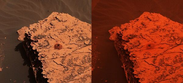 Во время песчаных бурь на поверхности Марса свет теряет свой обычный цвет и становится более красным. Это происходит в основном из-за особенностей фильтрации цвета через облако пыли. Через бурю проникает очень мало зелёного света, почти отсутствует синий. Этот эффект схож со случаями, когда лесной пожар меняет цвет света, или когда красный свет на сцене отфильтровывает другие цвета[8].