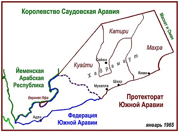 - султанатов бывшего британского протектората Аден (в дальнейшем — Народной Республики Южного Йемена, затем ставшей НДРЙ);