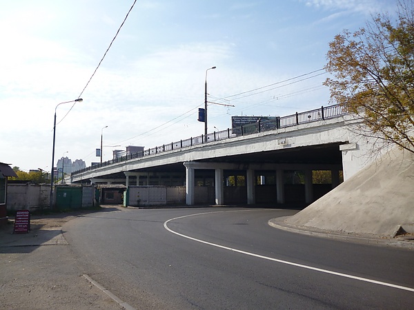 По путепроводу проходят автобусы 26, 100, 105, 300, 691, 691к, т19, т59.