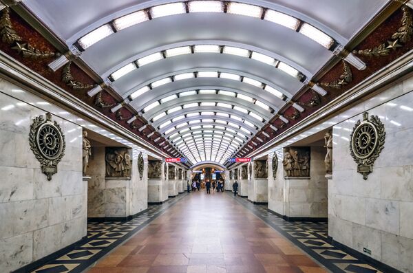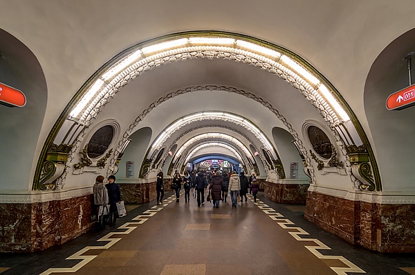 - ↑ «Площадь Восстания», «Пушкинская», «Нарвская», «Невский проспект», «Сенная площадь», «Технологический институт» (второй зал), «Спасская», «Обводный канал», «Волковская», «Бухарестская», «Проспект Славы»