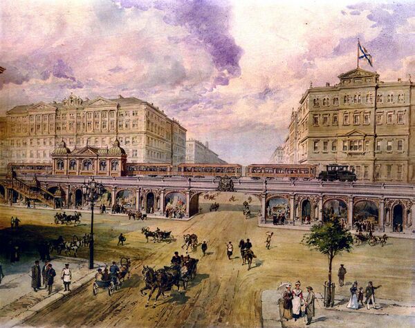 Проекты сооружений, напоминающих метрополитен, предлагались в Санкт-Петербурге ещё в начале XIX века. Первым таковым был проект тоннеля под Невой, соединяющий Васильевский остров с Адмиралтейской стороной, в 1814 году предложенный английским инженером Марком Изомбардом Брюнелем, однако Александр I отклонил проект, отдав предпочтение Дворцовому мосту[21]. Позже были представлены детальные проекты сооружения подземной железной дороги, соединяющей разные берега города, но они также не нашли отклика у императора — вместо неё в 1855 году соорудили Николаевский (ныне — Благовещенский) мост, который снял строительство тоннелей с повестки, однако вскоре транспортная проблема встала с новой силой[22]. К концу XIX века строительство метрополитена в столице Российской империи начало обсуждаться всерьёз. Тем временем, в Петербурге не было даже электрического трамвая. Противодействие городских властей, желавших взять этот вид транспорта под свой контроль, в конечном итоге стало одной из причин того, что проект метрополитена тогда так и не был осуществлён, так как был отклонён императором Николаем II[23].