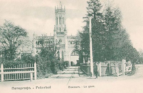 В 1853—1857 годах на средства известного предпринимателя А. Штиглица была построена Петергофская железная дорога протяжённостью 30 км — от Петербурга до Нового Петергофа. До этого, с 1830-х годов по Петергофскому шоссе ездил сухопутный паровоз. В 1854—1857 годах велось строительство железнодорожной станции Петергоф. Первый поезд, в четырнадцати вагонах которого ехали примерно 300 пассажиров, отправился из Санкт- Петербурга 21 июля 1857 года в 10 часов утра и через 1 час 10 минут прибыл в Петергоф, а 15 августа по Петергофской железной дороге торжественно проехал император Александр II вместе с великим князем Михаилом Николаевичем и другими членами императорской фамилии[19]. Состав прозвали «Кукушкой»; билеты продавали студенты, жившие на окрестных дачах; машинист и кондуктор были тоже нештатные[20].