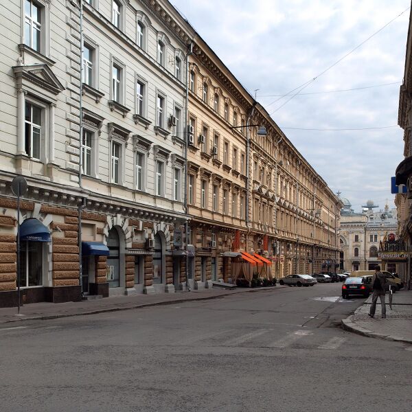 - № 1/20/21 — Доходный дом с квартирами и магазинами (1876, архитектор Б. В. Фрейденберг, инженер К. И. Шестаков). Здесь в 1878—1883 годах жили учёные С. В. Ковалевская и В. О. Ковалевский, в 1899—1903 годах размещалась редакция газеты «Курьер», в которой работали писатели Л. Н. Андреев, В. В. Вересаев, Н. Д. Телешов и другие. До 1917 года в доме работал книжный магазин и издательство И. Н. Кнебеля. Выявленный объект культурного наследия[2].