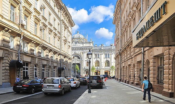 - № 2/18/19 — Доходный дом с гостиницей «Россия» и рестораном (1876, архитектор Б. В. Фрейденберг; 1897, архитектор К. К. Гиппиус; 1911, инженер А. Н. Кардо-Сысоев). До 1918 года здесь работал «Петровский театр миниатюр», в котором выступал А. Н. Вертинский. Также в доме размещался ресторан «Ампир» (затем «Элит», «Будапешт»). В 1918 году в доме состоялось общее собрание уполномоченных Московского Центрального рабочего кооператива, в 1919 году — пленум Всероссийского Центрального Совета профессиональных союзов; на обоих собраниях выступал В. И. Ленин. В советское время — «Второй дом Союзов». Объект культурного наследия федерального значения[2][3].