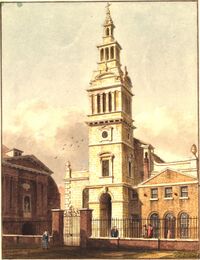 Двухъярусная колокольня в проекте Трезини до позднейших перестроек представляла собой автономный объём, несколько заглублённый по отношению к барочному фасаду, причём колокольня была не русского традиционно-ярусного, а западного, башенного типа. Наибольшее сходство с Петропавловским собором имеет лондонская церковь Сент-Мартин, построенная К. Реном в 1677—1684 годах. Она имеет квадратную в плане башню с волютами по сторонам и завершена высоким шпилем. Причём башня, что весьма необычно для классической архитектуры, размещена в одной плоскости с западным фасадом[21].
