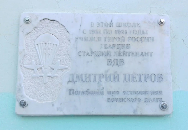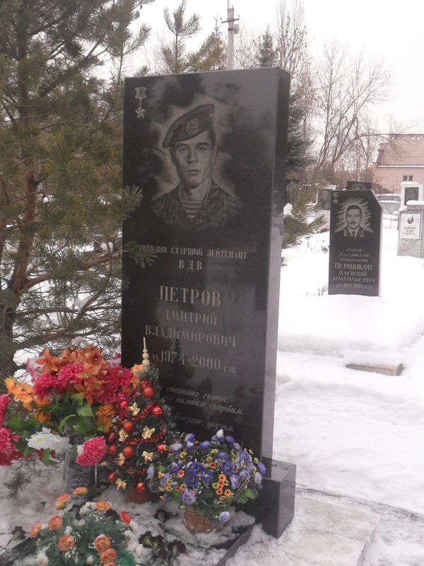 1 марта 2000 года при выполнении боевой задачи на территории Чеченской республики командир взвода 6-й парашютно-десантной роты 104-го гвардейского полка 76-й воздушно-десантной дивизии старший лейтенант Дмитрий Петров погиб. За мужество и героизм, проявленные в боях с террористами, удостоен звания Герой России (посмертно).