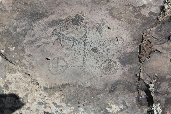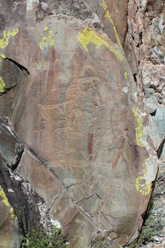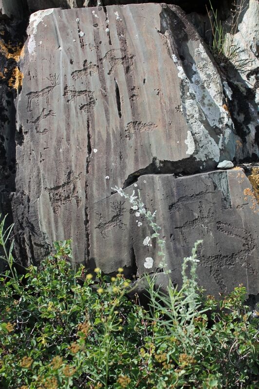 Место знаменито петроглифами, которые представлены антропоморфными, солярными и зооморфными изображениями. К последним относятся изображения оленей, лошадей, коров. Петроглифы относятся к различными историческим периодам: от неолита до древнетюркской эпохи[1].