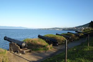 - № 7 («Противодесантная»[16]; 5 × 24-фунтовых орудий, 50 человек; командир — капитан-лейтенант В. К. Коралов) — на берегу Авачинской бухты у северной оконечности Никольской сопки; предназначалась для предотвращения высадки десанта в тыл и попытки захватить порт с севера.