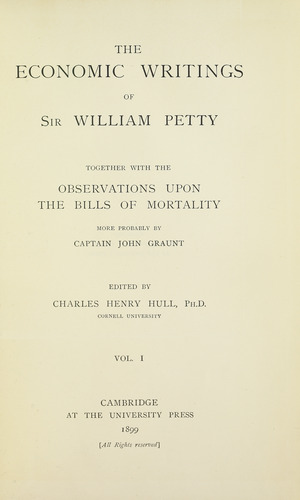 - Hull, Charles H. (ed.) (1899) The Economic Writings of Sir William Petty. London: Routledge/Thoemmes.