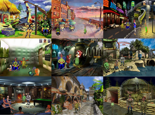 - Каждая игра серии односюжетна, имея лишь одно начало, один исход и один-единственный оборот предметов. Во 2-й, 8-й и 9-й частях, тем не менее, есть «проигрышные» концовки, после которых всю игру или же определённый её участок приходится переигрывать. Также, в 6-й, 7-й, 8-й и 9-й частях существуют «мини-игры» — экшн-вставки, часто пародирующие определённый жанр, в которых героев необходимо провести через препятствия (например, в 7-й части встречается пародия на игру «Pac-Man», а в 9-й — где мини-игр целых три — пародия на «Mario»).