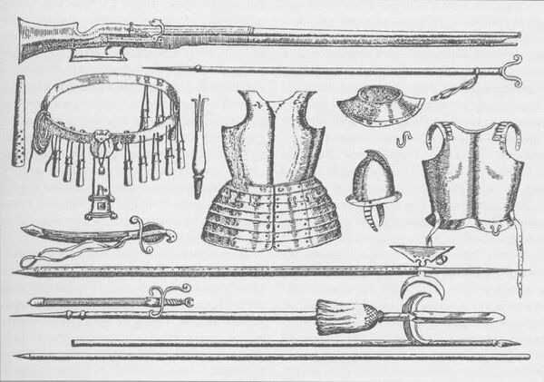 Одними из первых воинских формирований на Руси, которые были вооружены огнестрельным оружием, стали стрельцы — полурегулярная пехота территориального типа. В сочинении итальянца Ф. Тьеполо, составленном по рассказам очевидцев, русская пехота середины XVI века описывается следующим образом: «Пехота носит такие же кафтаны (как и конница), и немногие имеют шлемы».