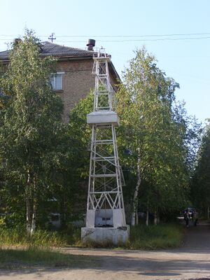 | На углу Печорского проспекта и улицы Мира возвышался макет башенной буровой вышки. Это памятник всем, кто вложил и вкладывает свой труд в разведку и добычу нефти и газа в Печорском районе. Буровая для Печоры — символ огромного труда, отданного в дело освоения Северного края. В 2021 году памятник реставрирован частично (не восполнены утраты) . |