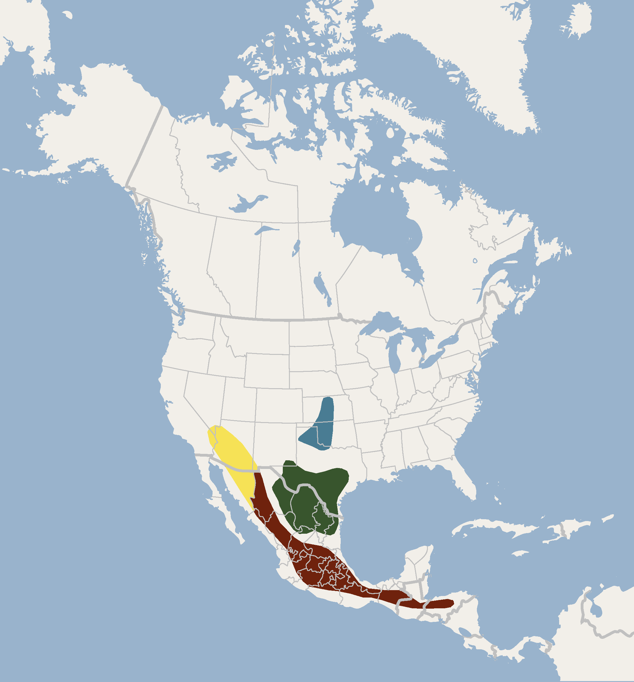 Вид распространён на территории стран: Белиз, Сальвадор, Гватемала, Гондурас, Мексика, США (Аризона, Калифорния, Канзас, Невада, Нью-Мексико, Оклахома, Техас). Встречается от низменностей до 3300 м над уровнем моря. Этот вид обычно встречается в вечнозелёных сосновых или дубовых лесах и в прибрежных местах проживания вблизи пустынного кустарника. Колонии насчитывают от 50 до 15 000 особей.