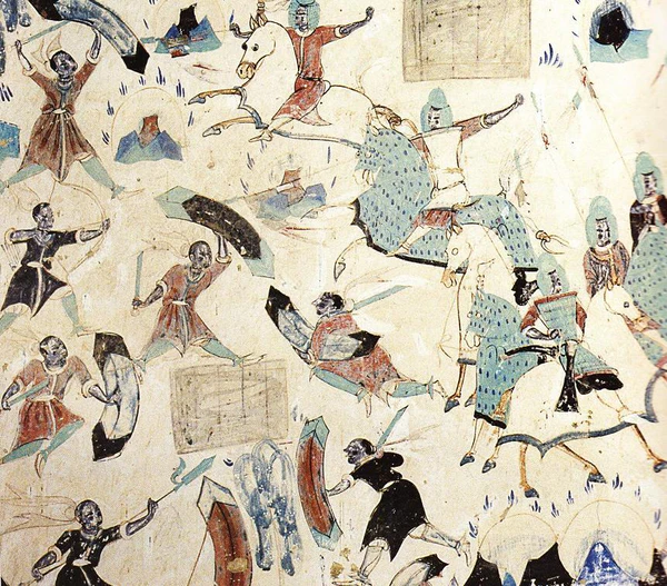 Другие росписи посвящены событиям из повседневной жизни: торжественный выезд императора, иностранные послы на пиру, встреча китайских и западных купцов, турниры воинов, выступления музыкантов, свадебная церемония, сцены охоты, рыбной ловли, сельскохозяйственных работ. Фрески изображают людей разных национальностей и социальных слоёв, их обычаи и одежду.