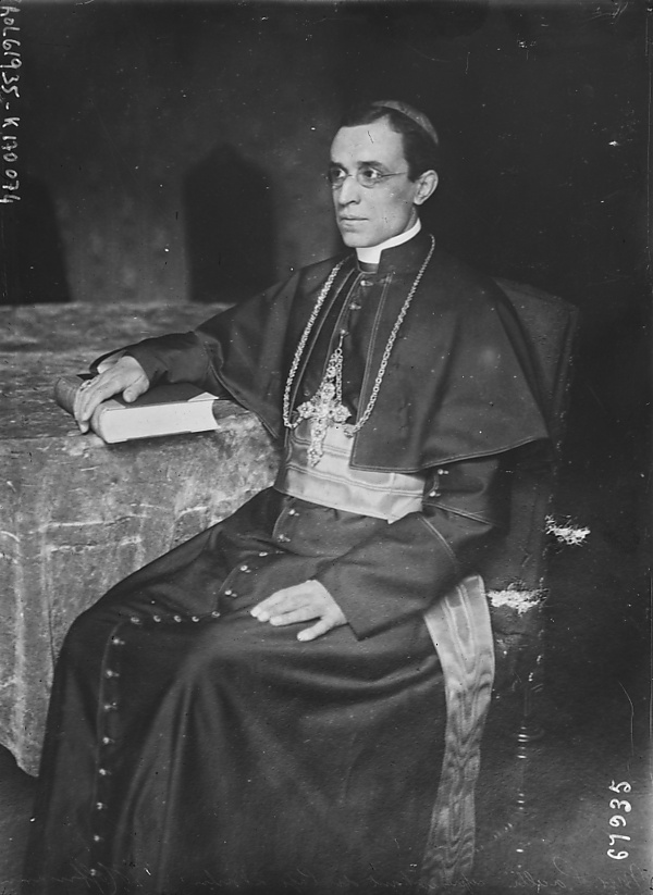 Давид Далин писал: «В качестве папского нунция между 1917 и 1929 годами, Пачелли дал в Германии сорок четыре выступления, в сорока из которых он осудил аспекты зарождающийся нацистской идеологии»[42]. В 1935 году, уже будучи Государственным секретарём, он написал письмо архиепископу Кёльна, описывая нацистов как «лжепророков с гордостью Люцифера» и «носителей новой веры и нового Евангелия», которые пытались создать «лживую систему между верностью к Церкви и Отечеству»[43]. Два года спустя в Соборе Парижской Богоматери в Париже, Пачелли назвал население Германии «благородной и могущественной нацией, которую плохие пастухи сбили с пути и прельстили идеологией расизма»[42].