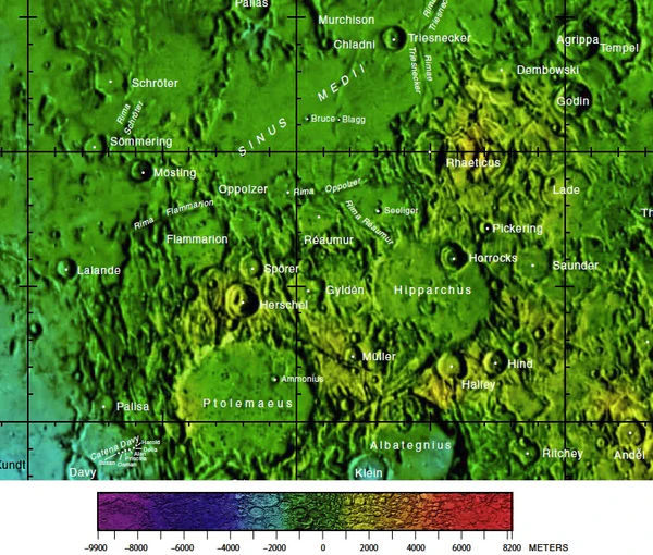 - Селенологическая карта окрестностей кратера.