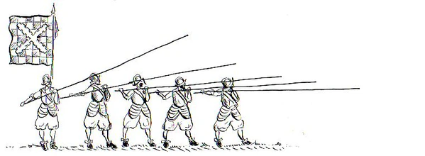 Слаженно действующее построение пикинёров представляло грозную силу в обороне, но отличалось низкой мобильностью при атаке.