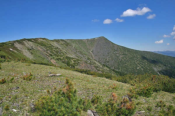 На пике есть геодезический знак и небольшой тур. Южный и западный склоны очень крутые. Через пик проходит популярный маршрут «Байкальская Кругосветка».