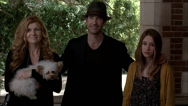 Вивьен Хармон (Конни Бриттон) проходит обследование у гинеколога и жалуется ему на свою личную жизнь. Они разговаривают про выкидыш Вивьен, который произошел ранее, и про то, как она себя чувствует. Врач советует Вивьен принимать гормональные препараты, но она отказывается. Вивьен возвращается домой, где ее пугает какой-то шум. Она берет нож, думая, что в ее дом пробрались злоумышленники, вызывает полицию и поднимается наверх. В спальне она обнаруживает своего мужа Бена в постели с его студенткой (Кейт Мара), которая всего на несколько лет старше их дочери Вайлет (Таисса Фармига).