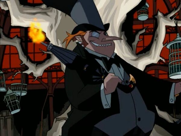 - В мультсериале Batman: The Animated Series образ персонажа основан как на фильме Тима Бёртона (внешний вид, физические недостатки), так и комиксах (утончённые манеры и индивидуальные черты). Наряду с Джокером является единственным злодеем, чья история не рассказана в сериале.